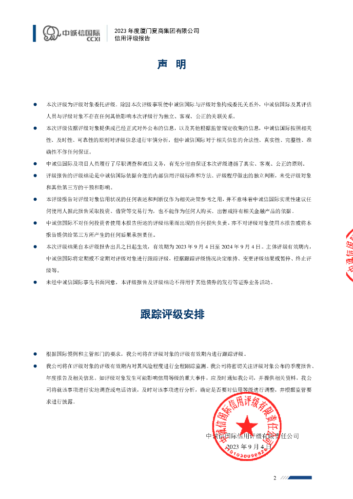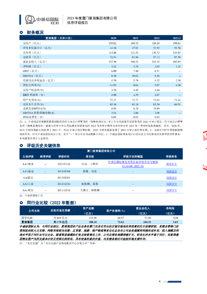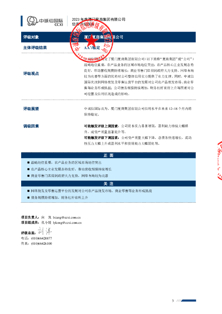 中诚信:厦门夏商集团有限公司2023年度信用评级报告.pdf