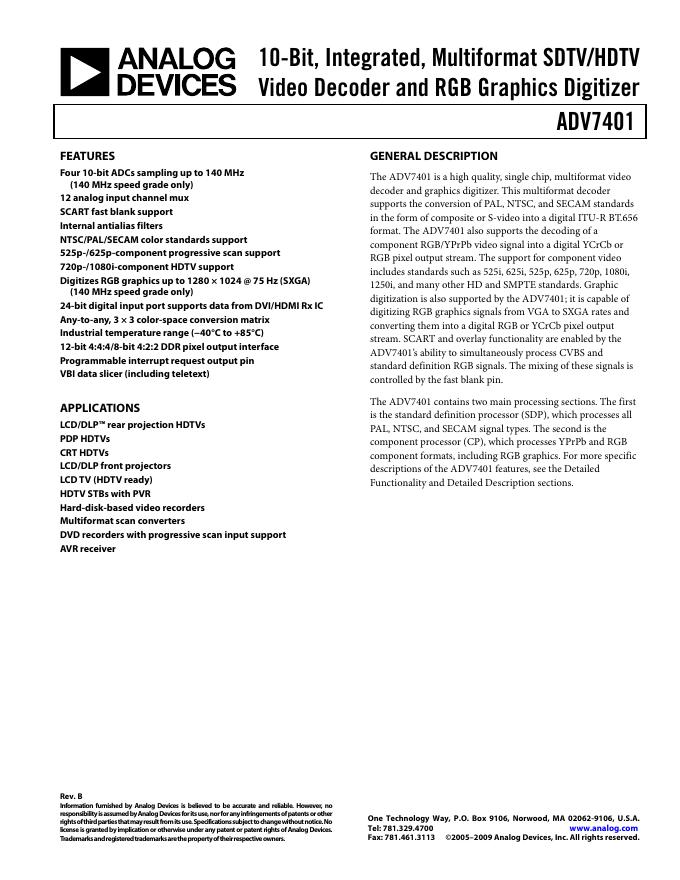 ANALOG DEVICES ADV7401 英文产品数据手册 Rev B.pdf