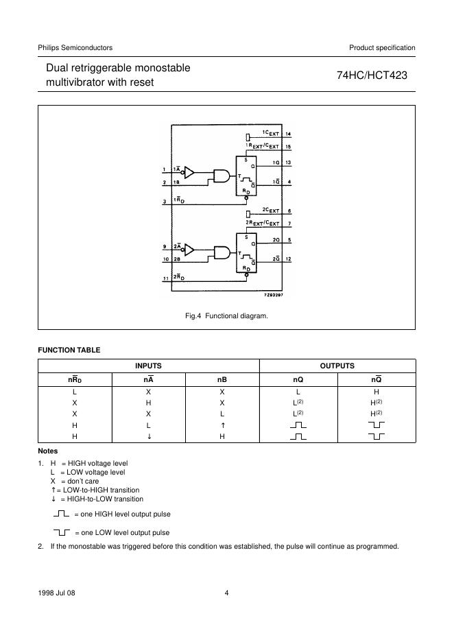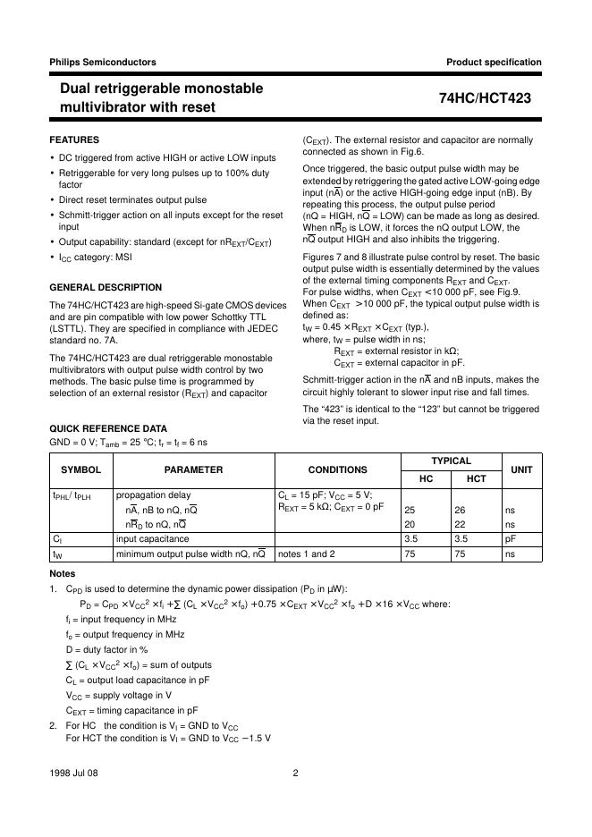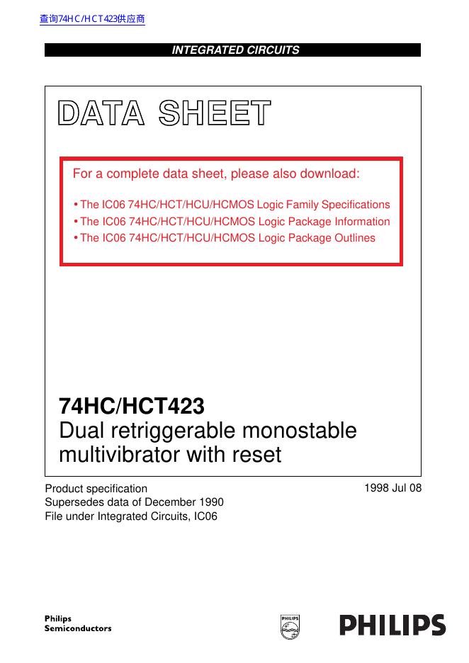 PHILIPS 74HC/HCT423 Dual retriggerable monostable multivibrator with reset 数据手册.pdf