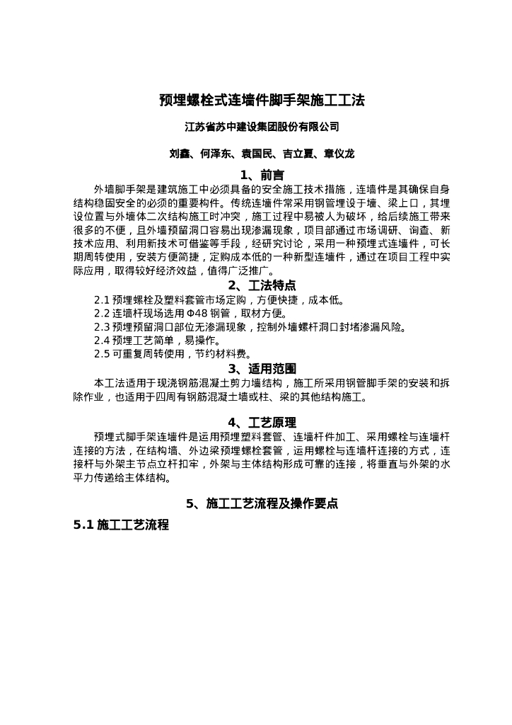 QHGF-2022022 预埋螺栓式连墙件脚手架施工工法.doc