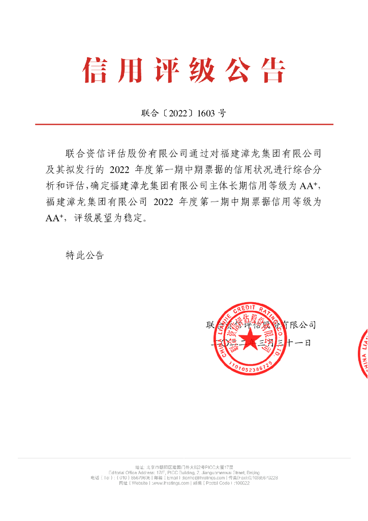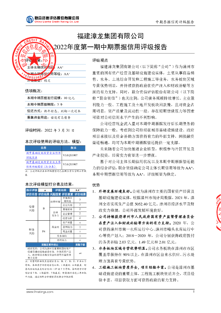 联合资信:福建漳龙集团有限公司2022年度第一期中期票据信用评级报告.pdf