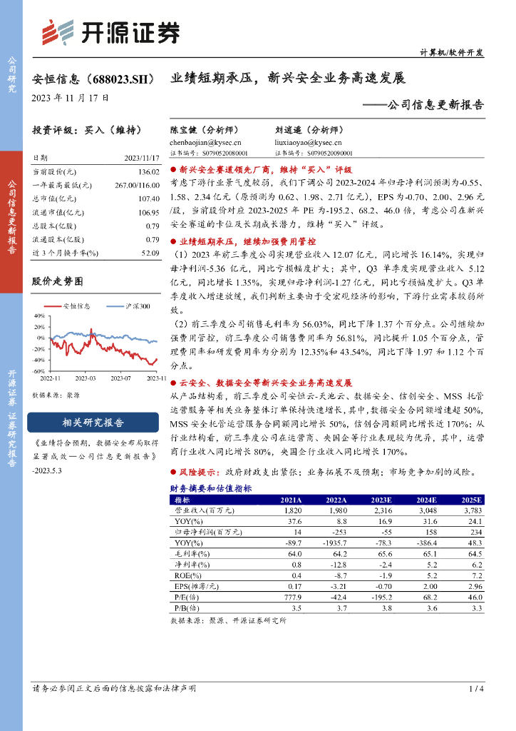 开源证券:安恒信息(688023)-公司信息更新报告:业绩短期承压,新兴安全业务高速发展.pdf