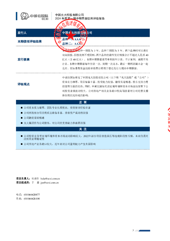 中诚信:中国光大控股有限公司2024年度第一期中期票据信用评级报告.pdf