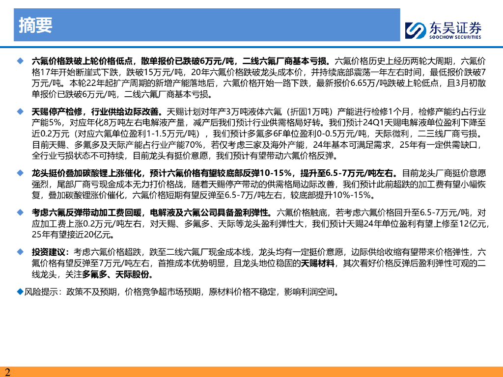 东吴证券:电解液及六氟专题:六氟价格超跌触底反弹,龙头具备盈利弹性.pdf