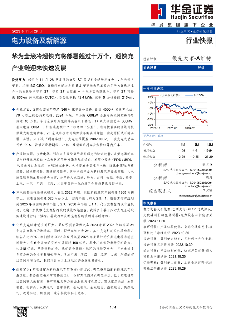 华金证券:电力设备及新能源行业快报:华为全液冷超快充将部署超过十万个,超快充产业链迎来快速发展.pdf