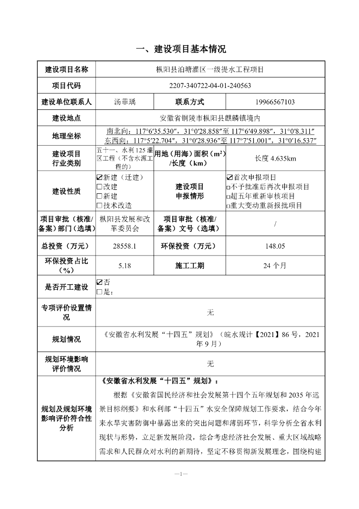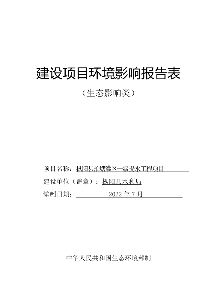 枞阳县泊塘灌区一级提水工程项目建设项目环境影响报告表(生态影响类).pdf