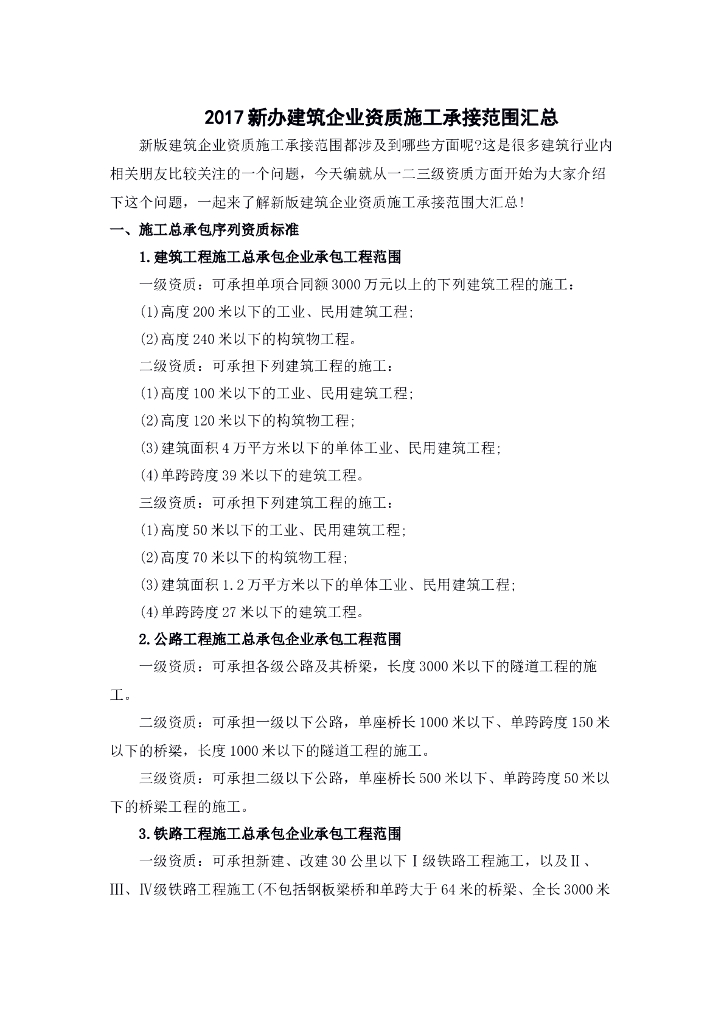 新版建筑企业资质施工承接范围汇总(共14页).doc