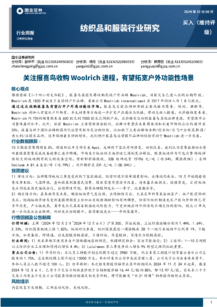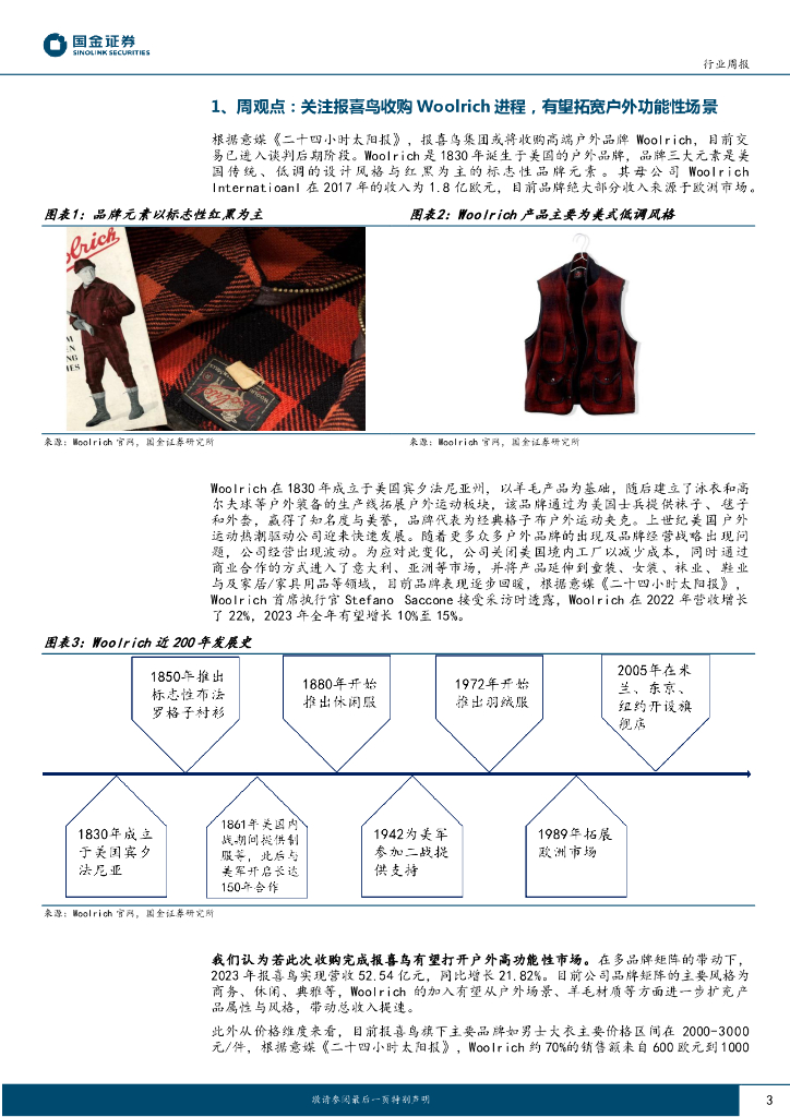 国金证券:纺织品和服装行业研究:关注报喜鸟收购Woolrich进程,有望拓宽户外功能性场景.pdf