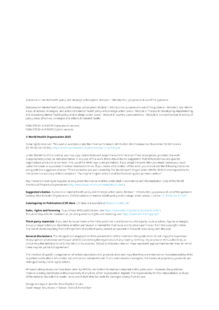 WHO世界卫生组织:2025年心理健康政策和战略行动计划指南:模块1引言,目的和使用指南报告(英文版).pdf