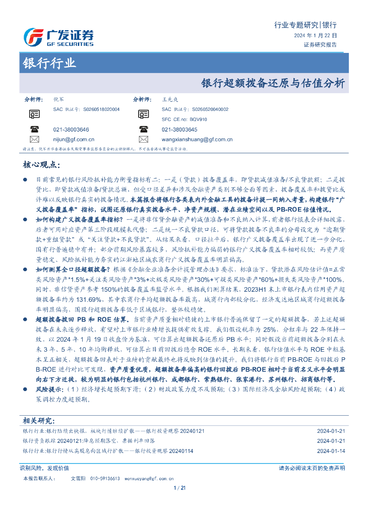 广发证券:银行行业:银行超额拨备还原与估值分析.pdf