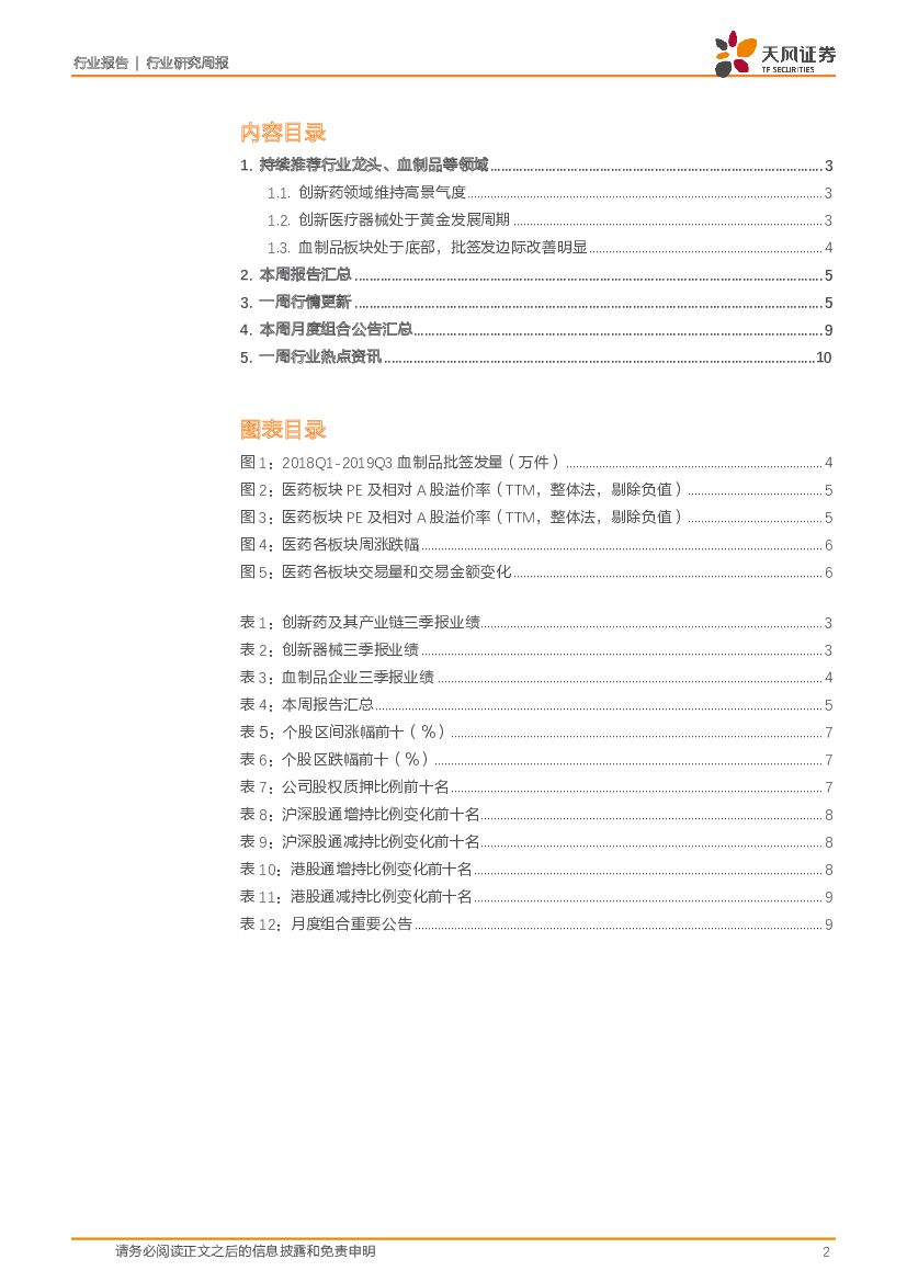 天风证券:医药生物行业研究周报:结构性行情有望持续演绎,持续推荐创新龙头和血制品领域.pdf