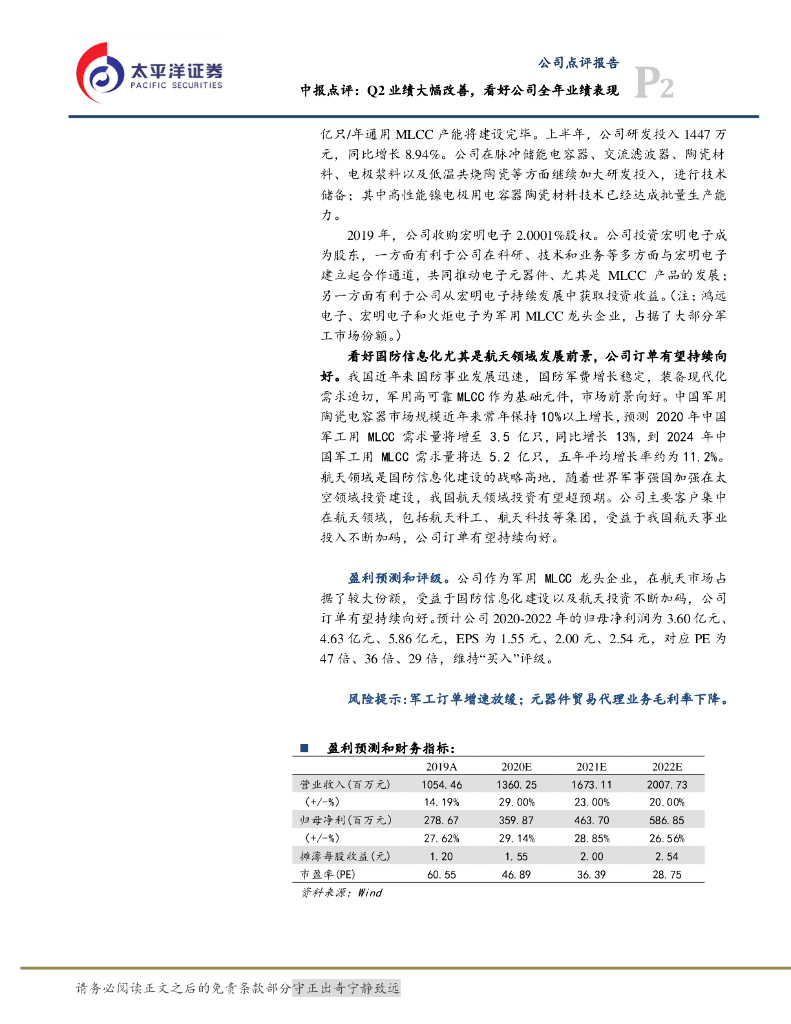 太平洋证券:鸿远电子(603267)-中报点评:Q2业绩大幅改善,看好公司全年业绩表现.pdf