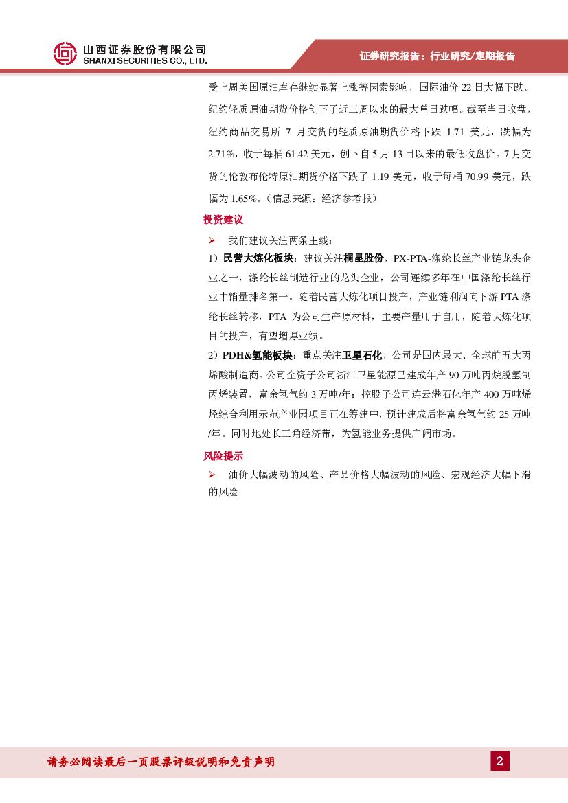 山西证券:石油石化行业周报:受美油库存急升以及贸易紧张局势影响,油价大幅下跌.pdf
