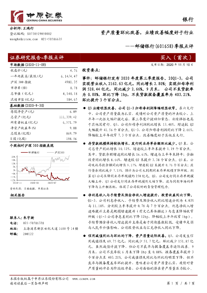 中原证券:邮储银行(601658)-季报点评:资产质量环比改善,业绩改善幅度好于行业.pdf