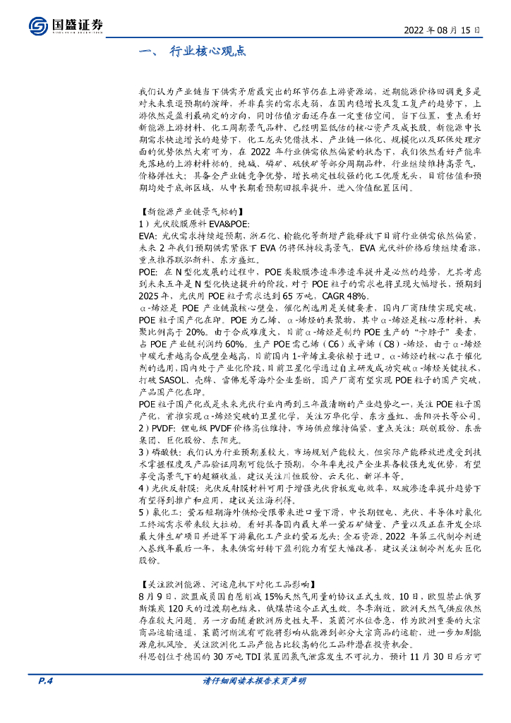 国盛证券:基础化工行业周报:看好EVA、POE等光伏胶膜原料,关注欧洲能源、河运危机下对化工品影响.pdf