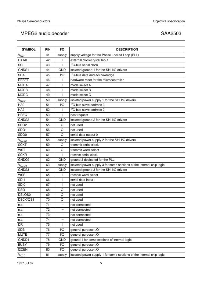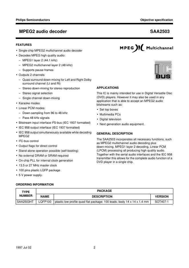 philips SAA2503 MPEG2 audio decoder 数据手册.pdf