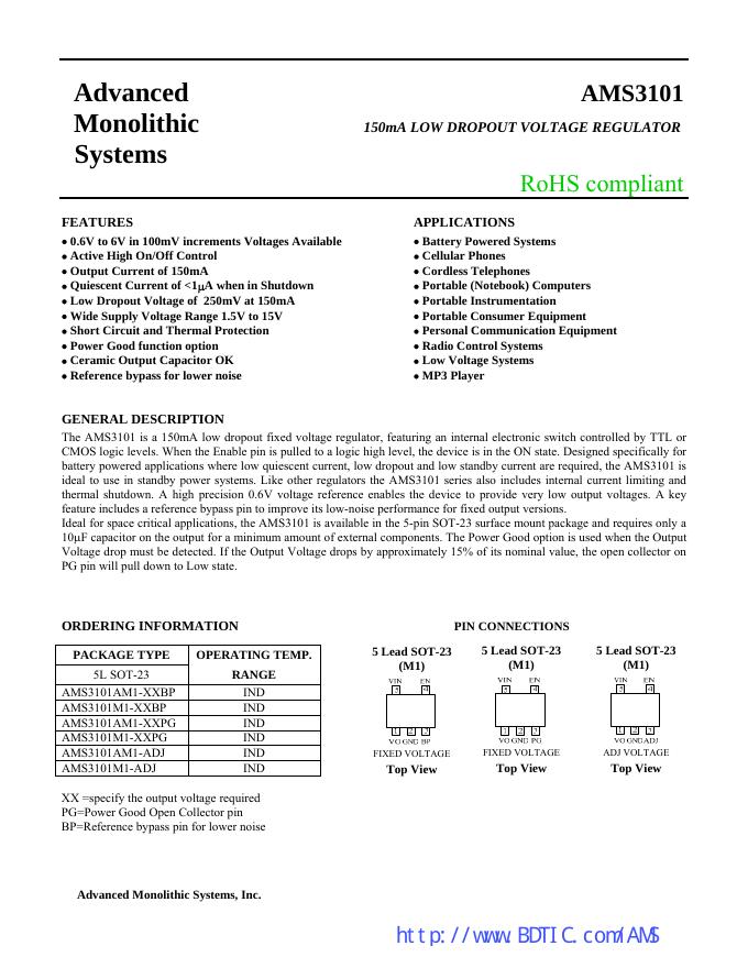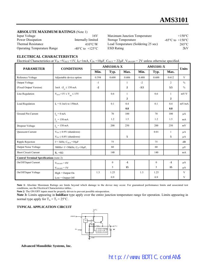 AMS3101 150mA LOW DROPOUT VOLTAGE REGULATOR 数据手册.pdf