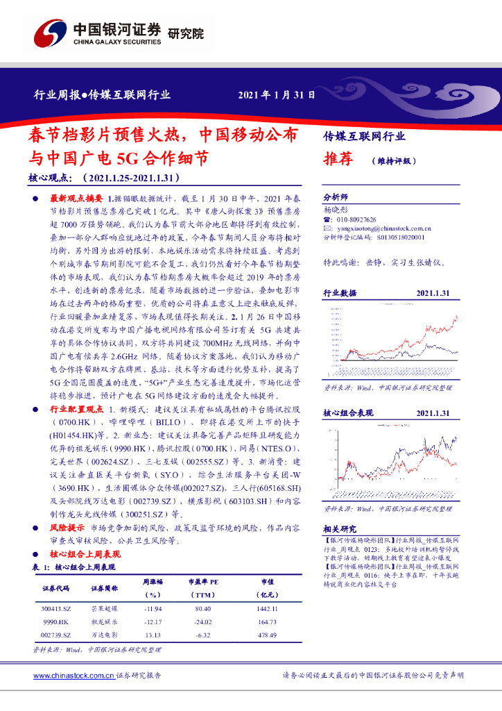 中国银河:传媒互联网行业周报:春节档影片预售火热,中国移动公布与中国广电5G合作细节.pdf