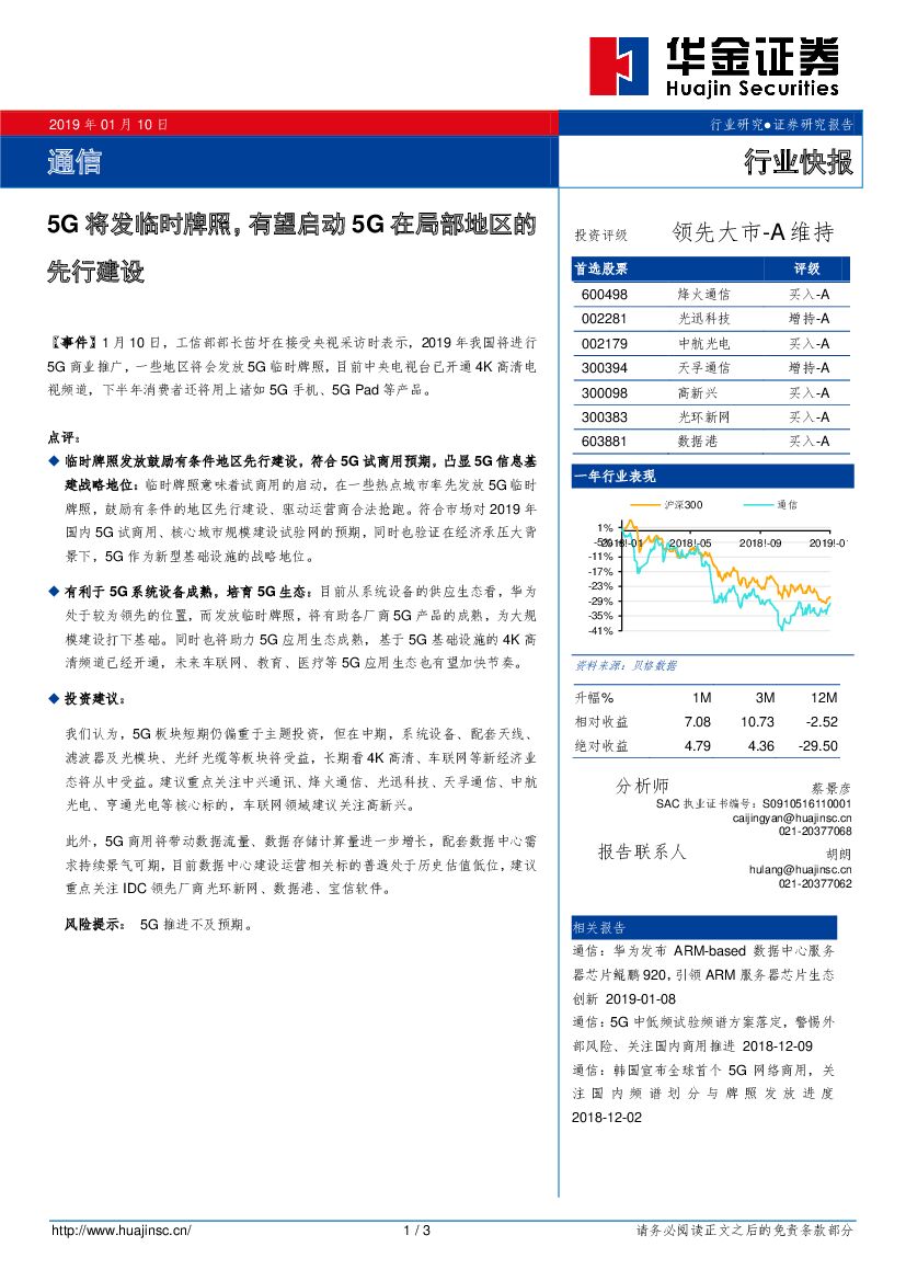 华金证券:通信行业快报:5G将发临时牌照,有望启动5G在局部地区的先行建设.pdf