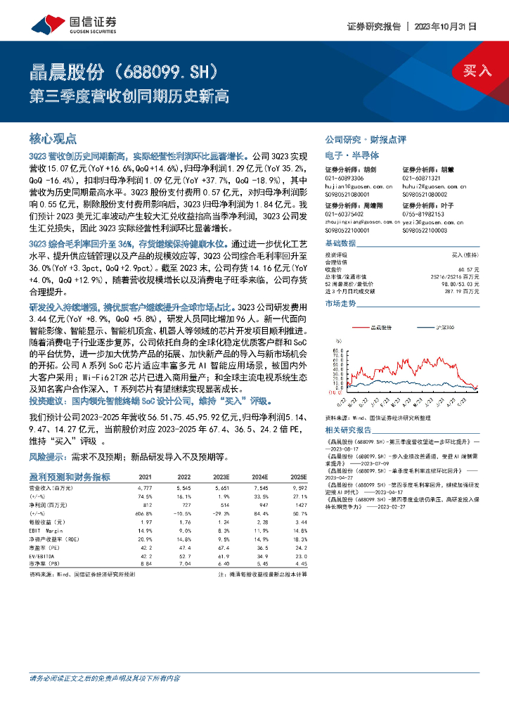 国信证券:晶晨股份(688099)-第三季度营收创同期历史新高.pdf