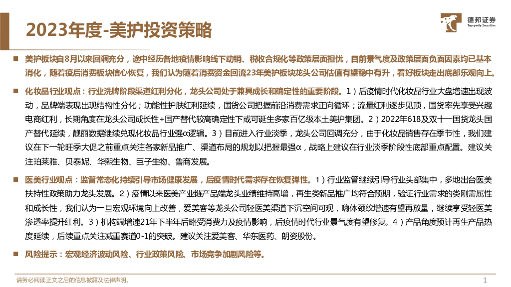 德邦证券:2023年度美护投资策略:走出底部,乐观向上.pdf