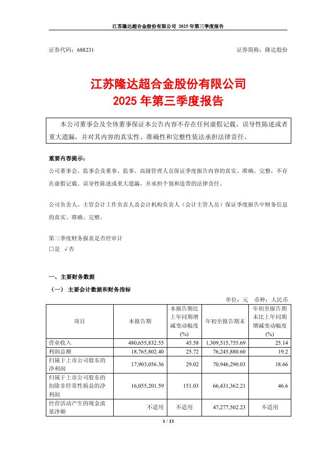 688231-隆达股份:2025年第三季度报告.pdf