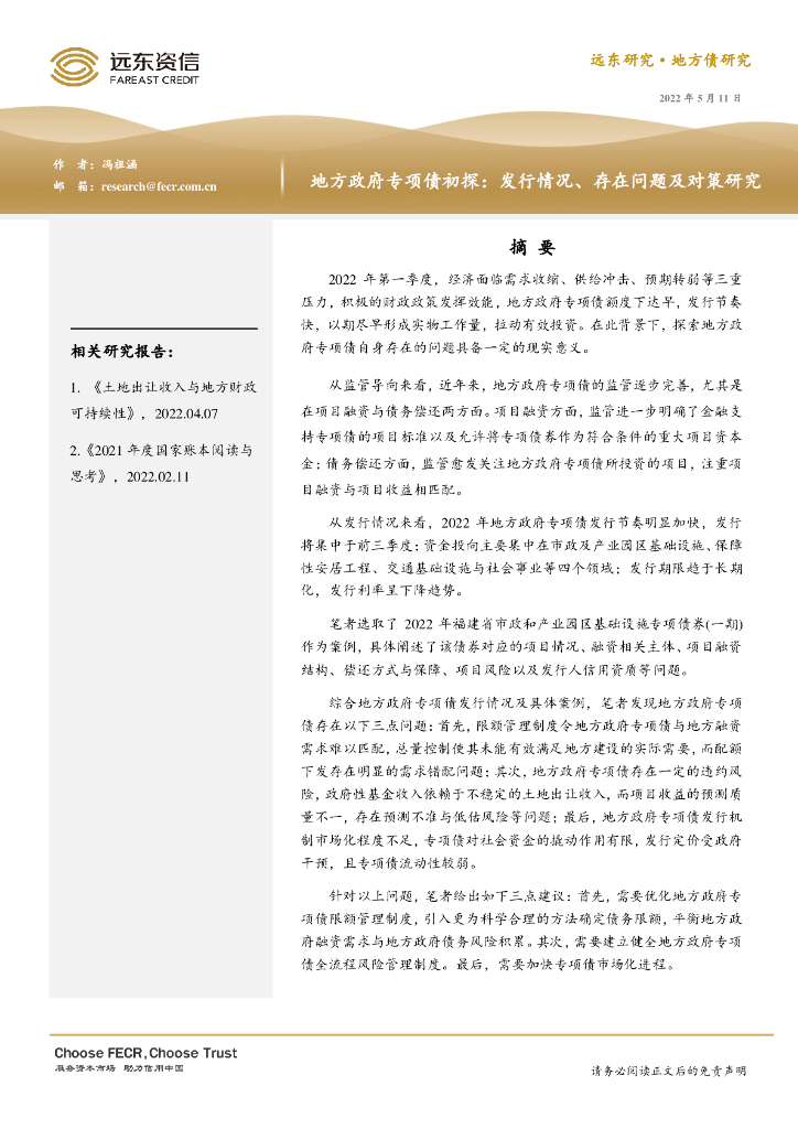 远东资信:地方政府专项债初探:发行情况、存在问题及对策研究.pdf