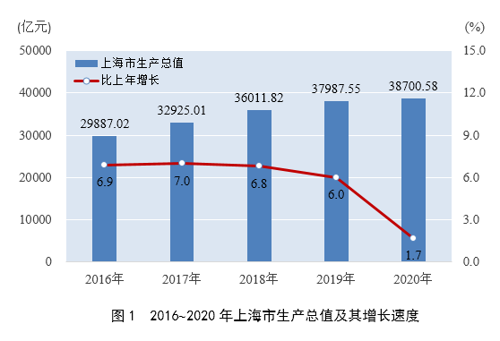 2.上海市生产总值、各产业增加值和总产值绝对数按当年价格计算,增长速度按可比价格计算。2020年上海市生产总值数据执行国家统计局2012年制定的《三次产业划分规定》。