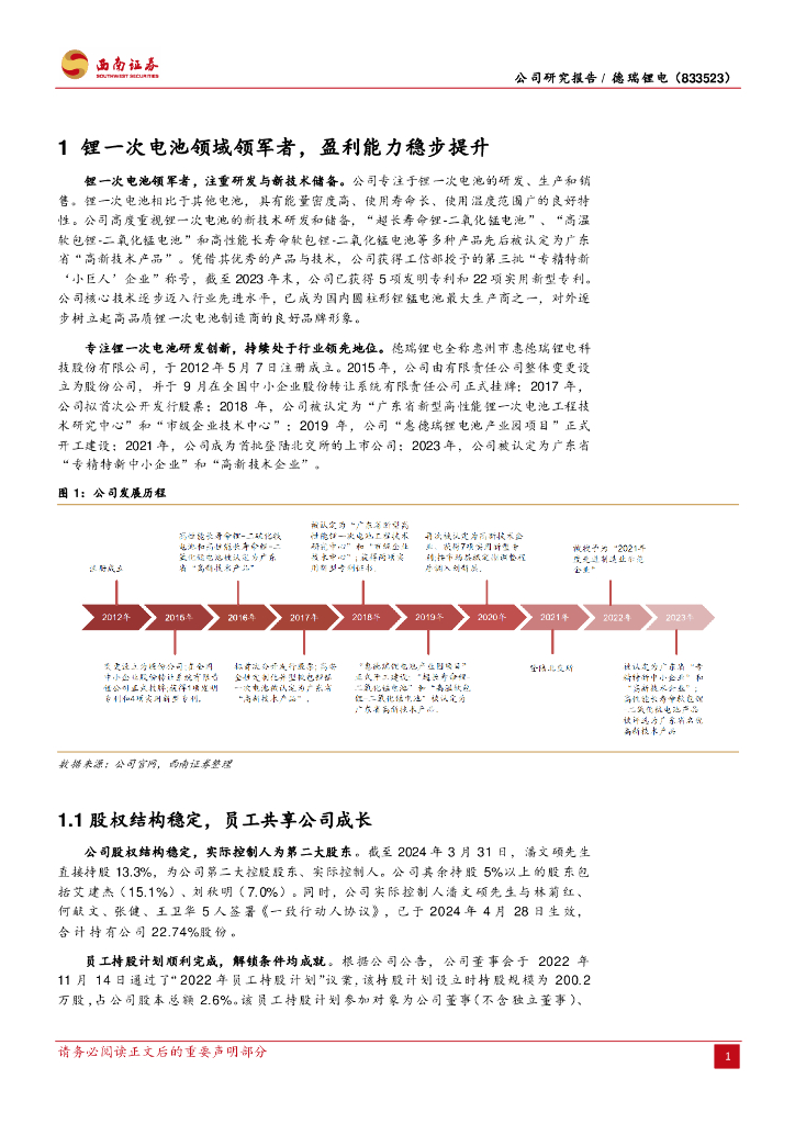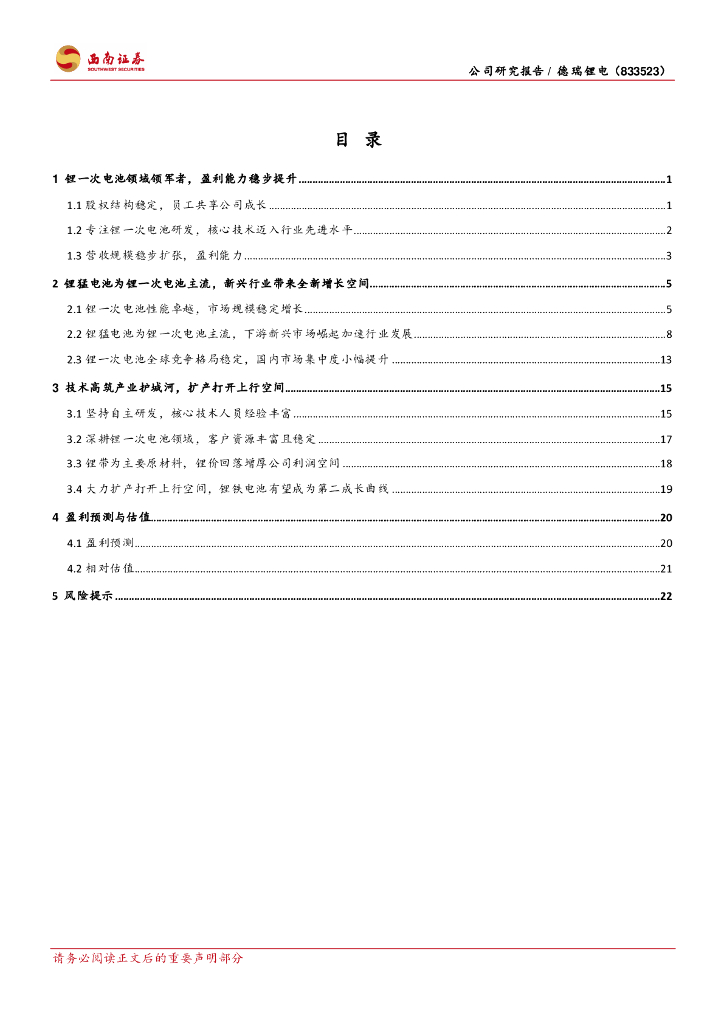 西南证券:德瑞锂电(833523)-锂一次电池领域深耕者,稳步扩产打开成长空间.pdf