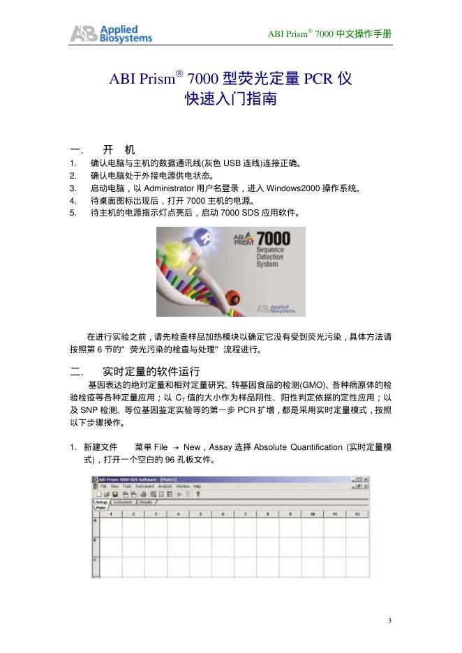 美国应用生物系统公司 ABI Prism 7000 型荧光定量 PCR 仪 操作手册.pdf