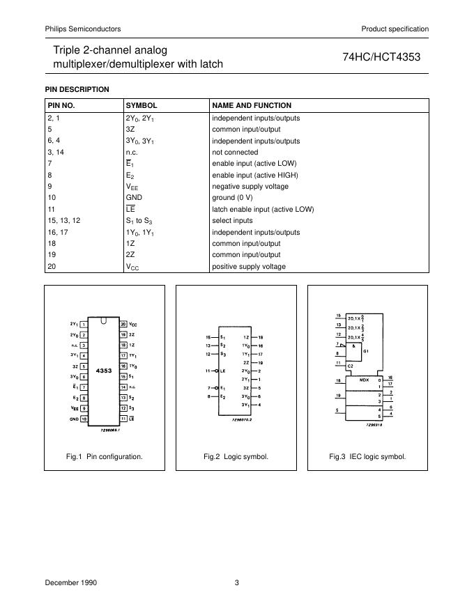 PHILIPS 74HC/HCT4353 Triple 2-channel analog multiplexer/demultiplexer with latch 数据手册.pdf
