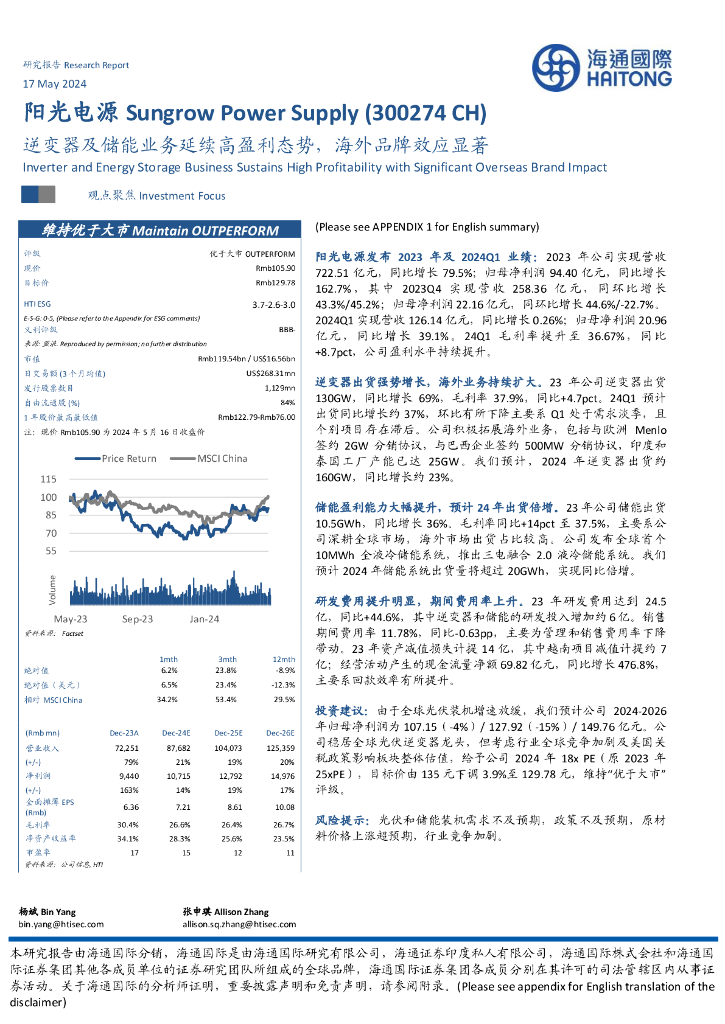 海通国际:阳光电源(300274)-逆变器及储能业务延续高盈利态势,海外品牌效应显著.pdf