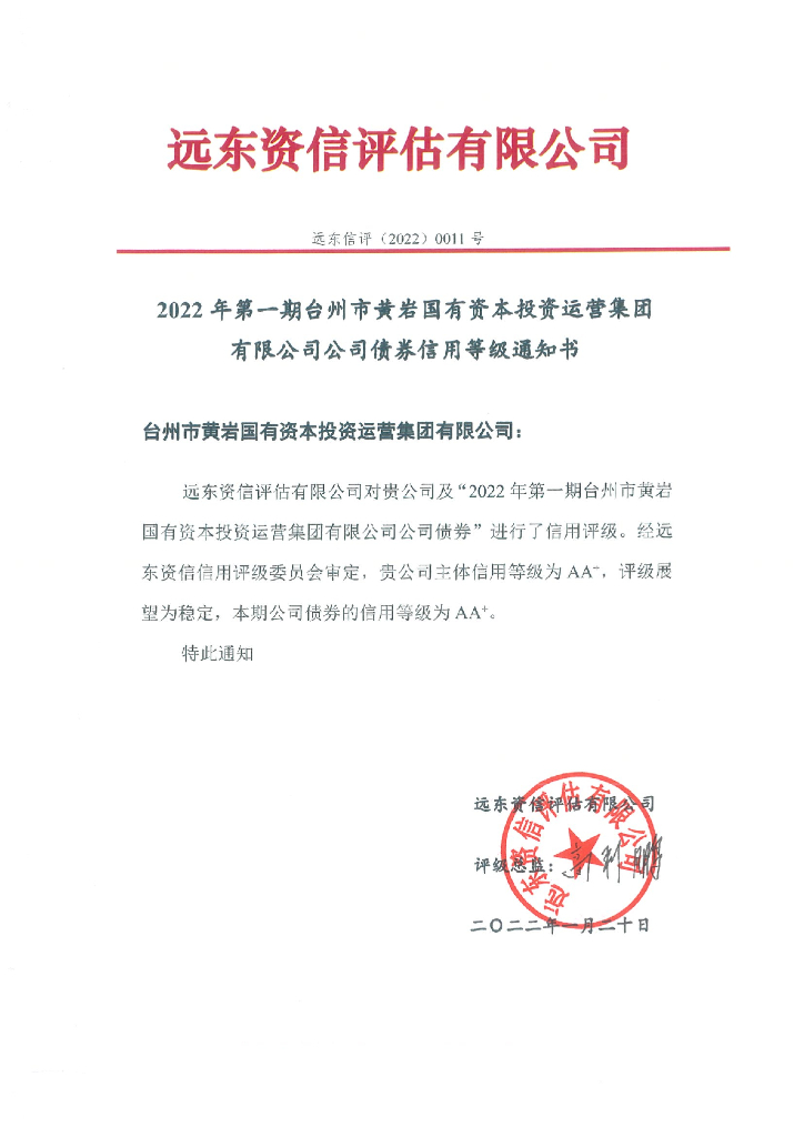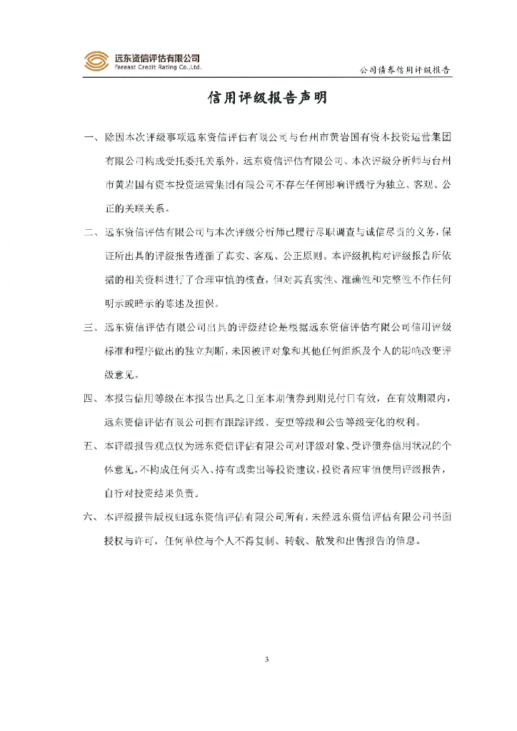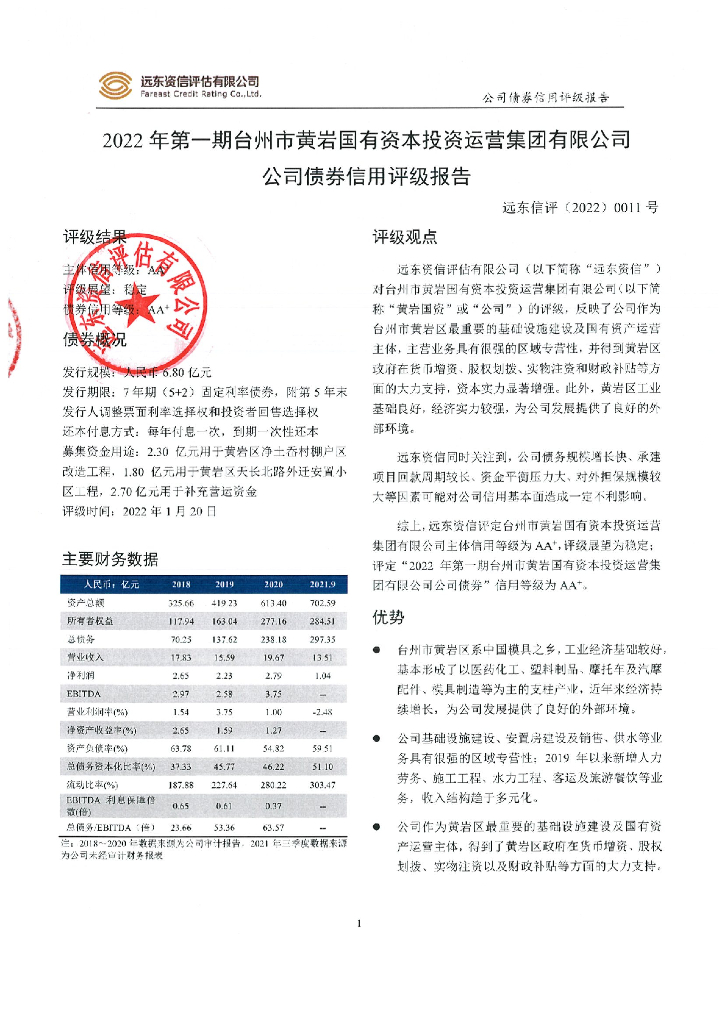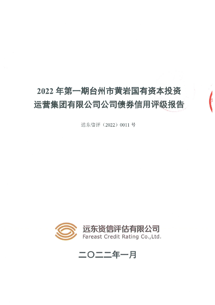 远东:2022年第一期台州市黄岩国有资本投资运营集团有限公司公司债券信用评级报告.pdf
