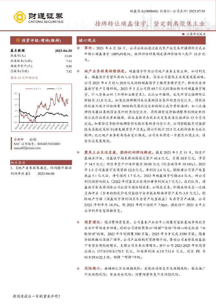 财通证券:顺鑫农业(000860)-挂牌转让顺鑫佳宇,坚定剥离聚焦主业.pdf