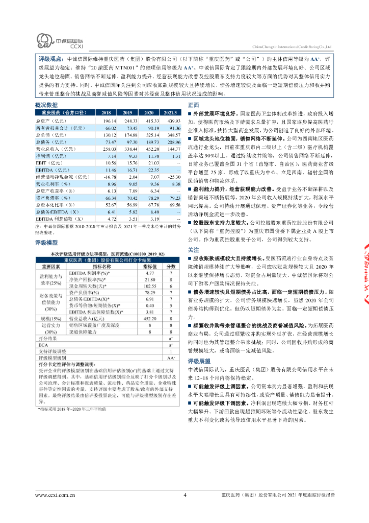 中诚信:重庆医药(集团)股份有限公司2021年度跟踪评级报告.pdf