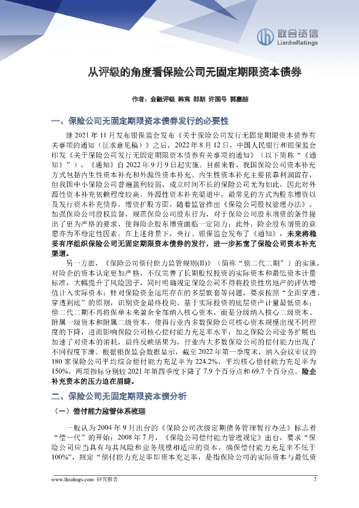 联合资信:从评级的角度看保险公司无固定期限资本债券.doc
