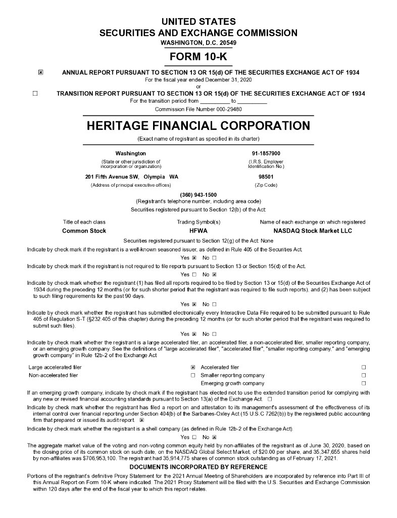 Heritage Financial Corporation(HFWA)2020财年年度报告(英文版).pdf