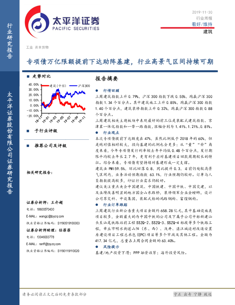 太平洋证券:建筑行业周报:专项债万亿限额提前下达助阵基建,行业高景气区间持续可期.pdf