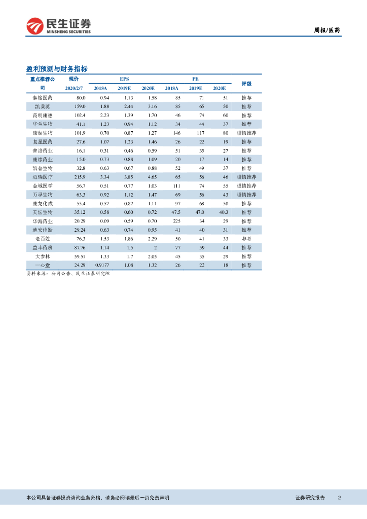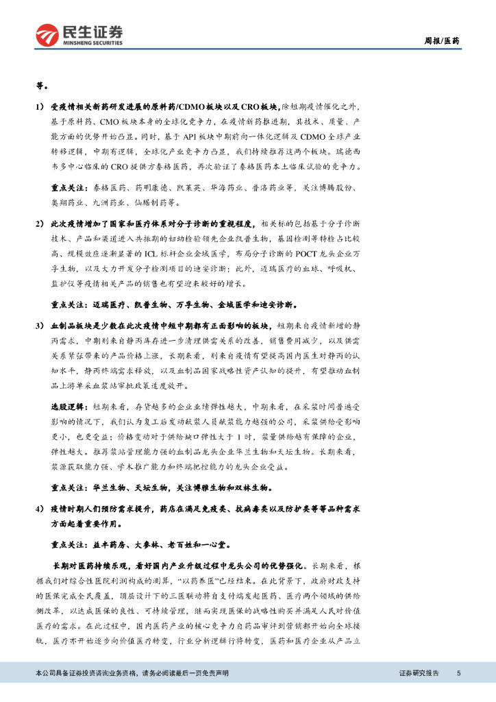 民生证券:医药周报:继续推荐短期疫情行情相关且中长期成长逻辑的板块.pdf