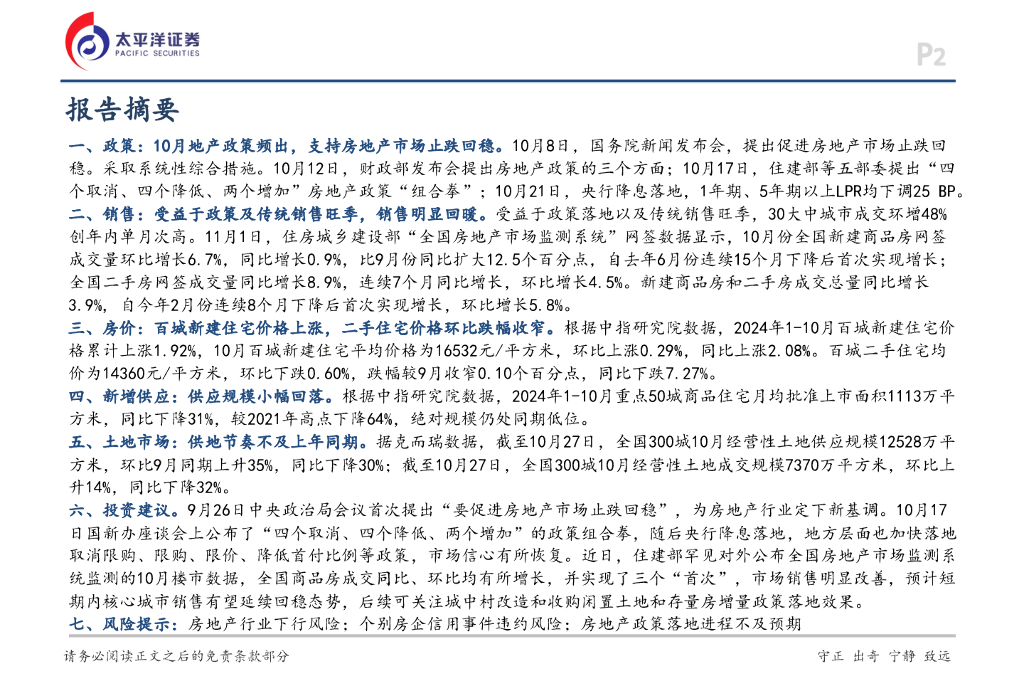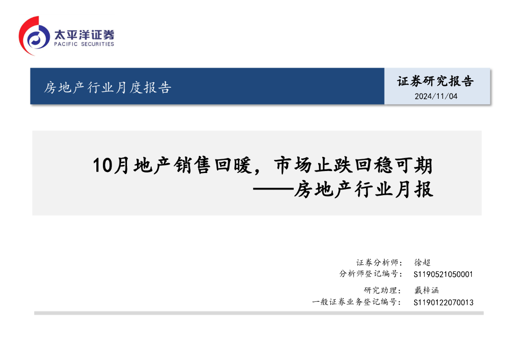 太平洋证券:房地产行业月报:10月地产销售回暖,市场止跌回稳可期.pdf