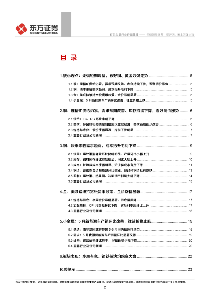 东方证券:有色钢铁行业周策略(2020年第24周):无惧短期调整,看好铜、黄金双强走势.pdf