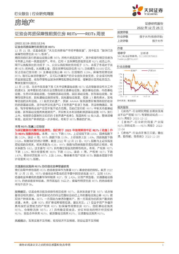天风证券:房地产REITs周报:证监会再提保障性租赁住房REITs.pdf