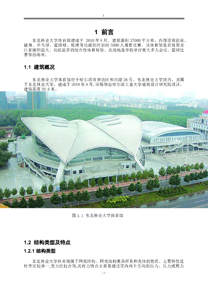 东北林业大学体育馆结构设计分析(word,14页).doc