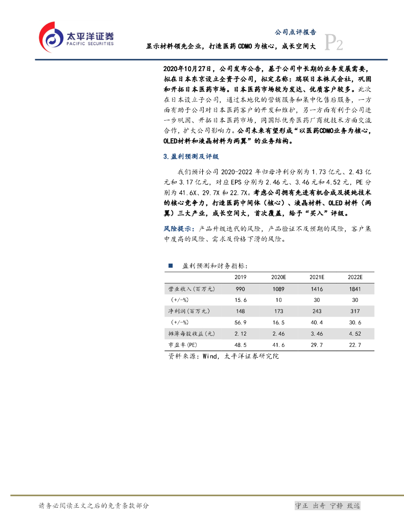 太平洋证券:瑞联新材(688550)-显示材料领先企业,打造医药CDMO为核心,成长空间大.pdf