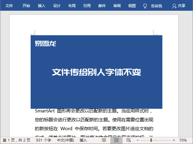 3、文件传给别人,字体不会改变