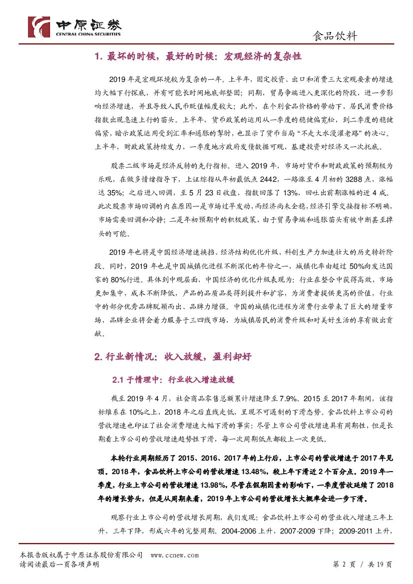 中原证券:食品饮料行业2019年下半年投资策略:三季度调整,四季度行稳.pdf