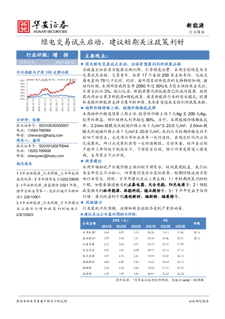 华安证券:新能源行业周报:绿电交易试点启动,建议短期关注政策利好.pdf