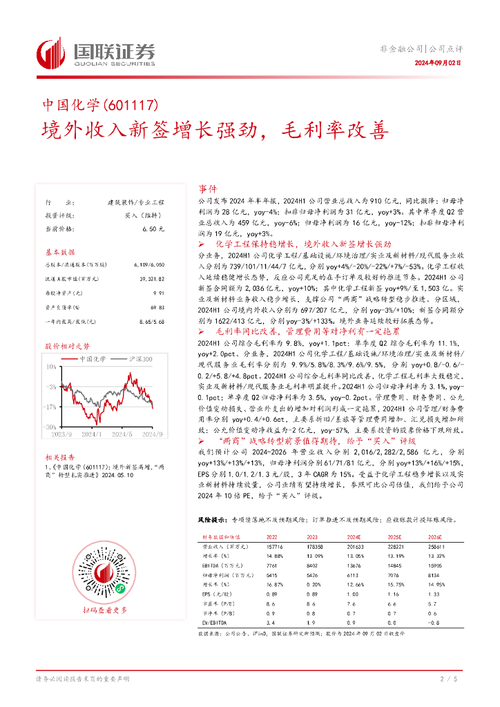 国联证券:中国化学(601117)-境外收入新签增长强劲,毛利率改善.pdf