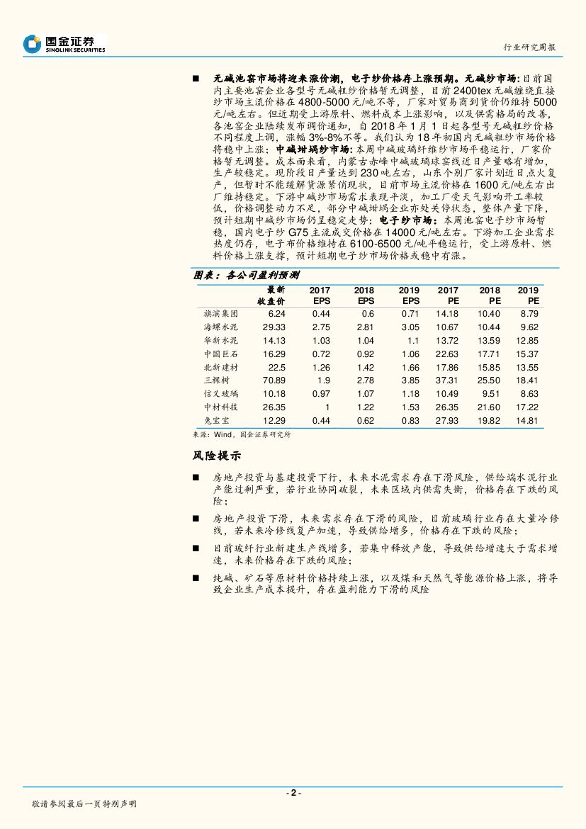 国金证券:非金属类建材行业研究周报:玻纤粗纱进入涨价周期,玻璃水泥价格高位企稳.pdf