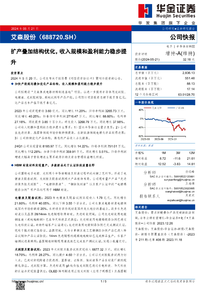 华金证券:艾森股份(688720)-扩产叠加结构优化,收入规模和盈利能力稳步提升.pdf